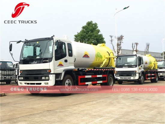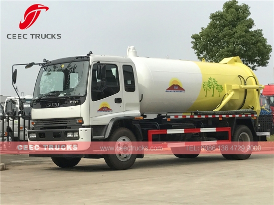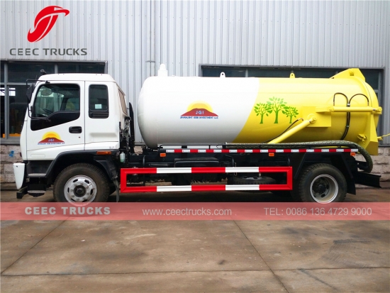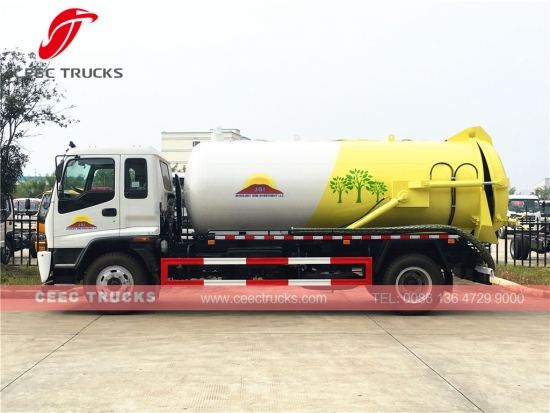 ИСУЗУ бренд 10000Л септичка јама за пражњење, ИСУЗУ 4ХК1-ТЦ 190ХП дизел мотор, исузу МЛД 6-степени мануелни мењач, цистерна за челични материјал високе чврстоће може бити до 10 кубних метара, вакум пумпа ВЕИЛОНГ, уређај за хидраулично подизање зависе од захтева за фарбање и испуштање отпада.