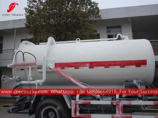 Вакуум цистерна ДОНГФЕНГ(такођезовевозило за пражњење септичке јаме, камион за чишћење канализације, цистерна за отпадну воду, камион за канализацију, уређај за пражњење септичке јаме, испражник сливника, вакумски камион, сливник за пражњење, цистерна за вакум отпад, вакум цистерна, камион за канализацију)јекористи се за сакупљање, транспорт и испуштање течности као што су прљава вода, муљ, септичка, сирова нафта и чврсте ствари као што су ситно камење, цигле такође. Погодан је за чишћење канализације, септичке јаме, септичке јаме, сливника, итд. Широко се користи у области животне средине и санитације.