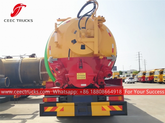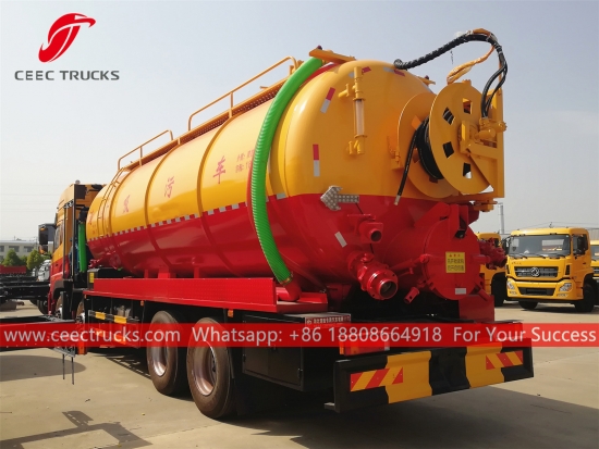 Комбиновани вакумски камион Донгфенг (такође се зове8 * 4 комбиновани млазни усисивач, вакумски комбиновани камион за прочишћавање канализације, комбиновани камион за чишћење канализације, комбиновани камион за усисавање са млазним млазом, камион за усисавање и вакуум усисивач, вакумски и млазни камион, комбиновани камион за испирање са вакуумским млазом) је возило које је дизајнирано да очисти сваку блокаду са млазницама које се крећу у канализационом цевоводу под високим притиском и очисти канализационе одводне линије помоћу снажног вакуумског усисавања да усисава сву воду и муљ из канализационе рупе. Овај камион се широко користи за заштиту животне средине.