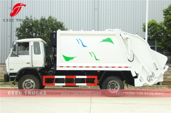 Компактор за смеће Донгфенг (такође се зовеКомпримовани камион за смеће, камион за смеће са хидрауличним пресовањем, камион за смеће са задњим утоваром, камион за смеће компактор, камион са компресором за смеће, камион за компресију за смеће, возило за сакупљање отпада) је дизајниран за свакодневни транспорт смећа у животним подручјима као што су све врсте градова, велике станице, луке и пристаништа, аеродроми и густо насељена подручја попут индустријских и минералних предузећа и војних јединица.