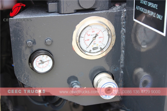 Донгфенг 10.000Л камион за набијање смећа, користите дизел мотор марке ЦУММИНС, са снагом мотора 170КС, стандардом за емисију издувних гасова ЕУРО 3, ручним мењачем са 6 брзина за лак рад, кућиште компактора од чврстог челика са унутрашњим и спољашњим фарбањем против рђе, сви логотипи по потреби