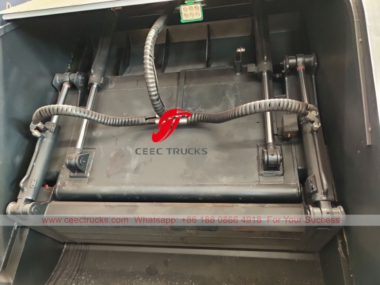 Најквалитетнији компримовани камион за смеће од 10 ЦБМ, који користи тело компактора од челичног материјала високе чврстоће, увезени контролни ПЛЦ модел, уређај за контролу хидрауличног цилиндра, контролну кутију на енглеском језику за лак рад.