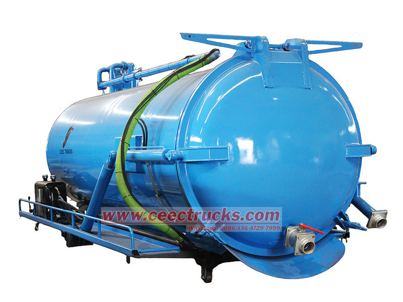 Камионска вакуумска цистерна од 12.000 литара (такође се назива горња каросерија камиона са вакуумском пумпом од 12 кубних метара, надградња камиона са вакуумском цистерном од 12.000 литара, комплет горње каросерије камиона са септичком јамом, горња каросерија камиона са вакуумском усисном јамом, комплет камиона за усисавање канализације од 12 кубних метара) Монтиран на шасију возила, апсорбује и сакупља течности као што су канализација, муљ, седименти из септичких јама, сирова нафта и ситни чврсти отпад, попут ситног камења. Може се широко користити у чишћењу канализације, септичких јама и јарака, играјући виталну улогу у општинској санитацији и управљању животном средином.