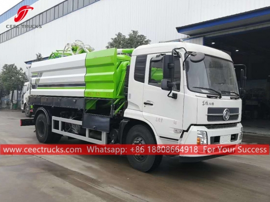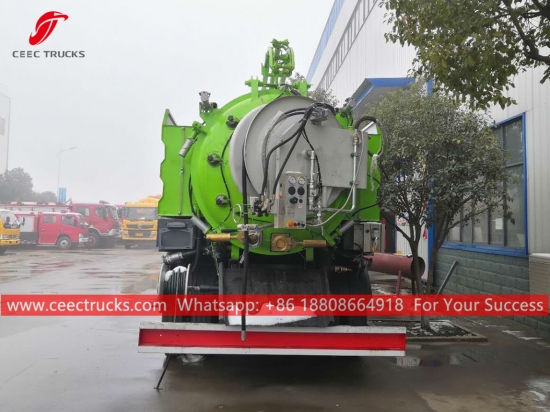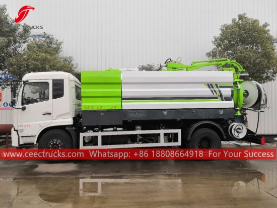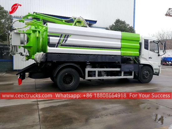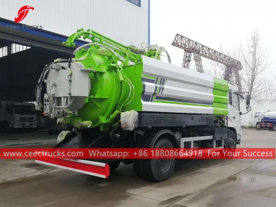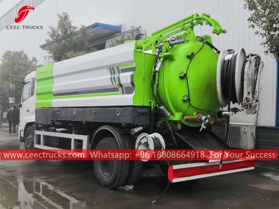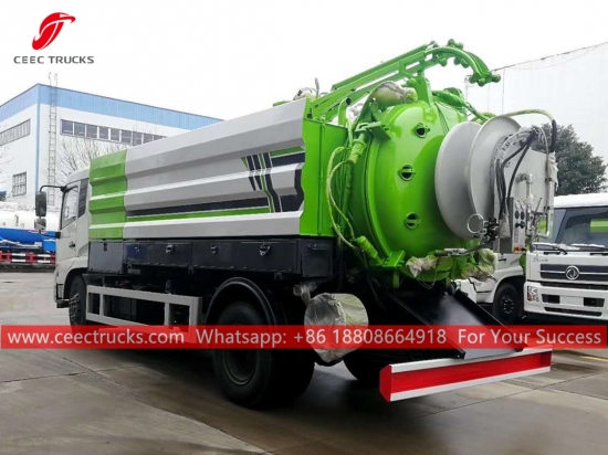 Комбиновани вакумски камион Донгфенг (такође се зовеКомбиновани млазни усисивач, камион за усисавање, комбиновани чистач канализације, комбиновани млазни усисни камион, млазни и усисивач, усисивач и млазни камион, комби са млазом / усисивачем) је возило које је дизајнирано да очисти сваку блокаду са млазницама које се крећу у канализационом цевоводу под високим притиском и очисти канализационе одводне линије помоћу снажног вакуумског усисавања да усисава сву воду и муљ из канализационе рупе. Овај камион се широко користи за заштиту животне средине.