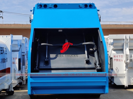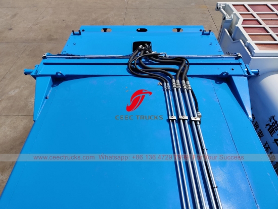 Горње тело компактора отпада високог квалитета од 12 ЦБМ, које користи тело компактора од челичног материјала високе чврстоће, ЦАН контролни систем, уређај за контролу хидрауличног цилиндра, контролну кутију енглеске верзије за лак рад.