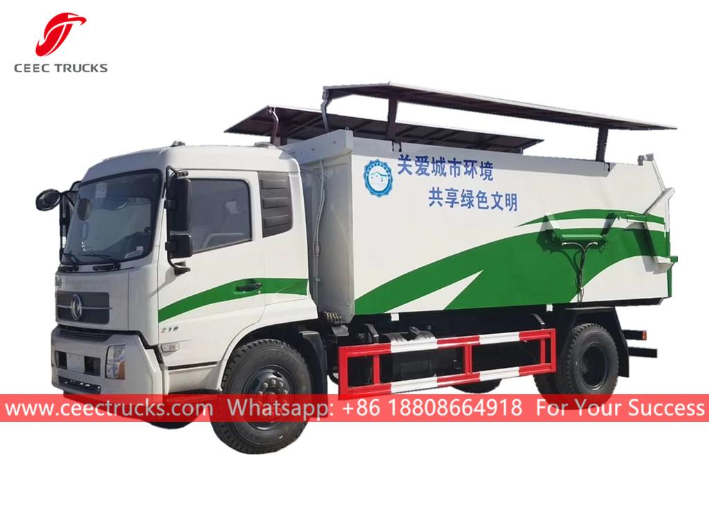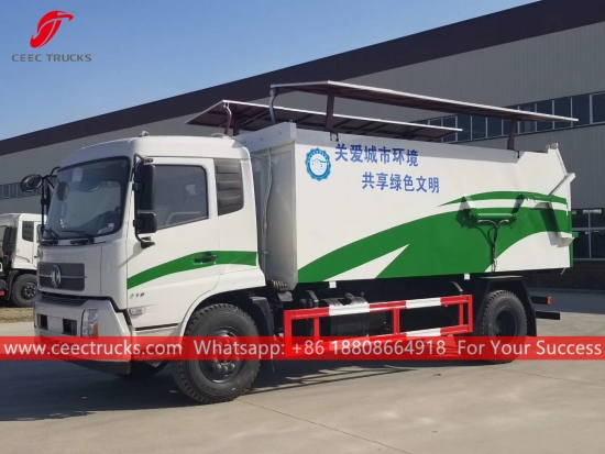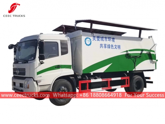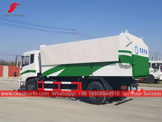 ДОНГФЕНГ 12цбм дампер за смеће, 4к2 шасија, ручни мењач са 8 брзина, дизел мотор ЦУММИНС 190 КС, углавном сервис за станицу за смеће, хидраулична задња врата и горњи поклопац за лак рад, средњи уређај за подизање, све боје и логотипи зависе од захтева.