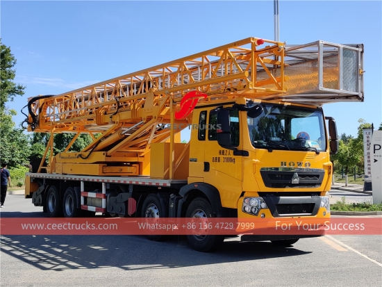 Извоз камиона за инспекцију моста од 18 метара врхунског квалитета у Јужну Америку. ХОВО модел 8к4 камионска шасија, ХВ19710 модел 10-степени мануелни мењач, дизел мотор ВЕИЦХАИ 380 КС, дуга платформа за тешке услове рада са хидрауличним цилиндром, радна висина може бити 18м, сликање и логотипи зависе од захтева.