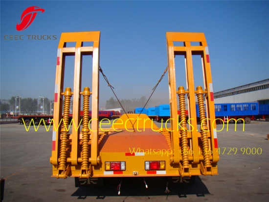 Кина 2 осовине 30тон тешке приколице са ниским лежајем/полуприколица са ниским лежајем за продају у земљама Африке. Ниска димензија кревета може бити максимално 10 метара, БПВ осовина, ЈОСТ 13 Т ноге за стајање, ЈОСТ50# пин за врхунски квалитет