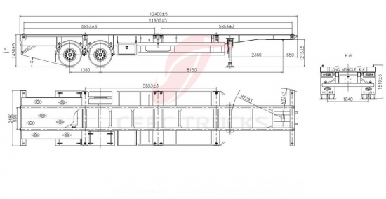 Полуприколица за транспорт контејнера са 2 осовине од 40 стопа/платформа са окретним постољем, приколица за вешање тешких окретних постоља користи БПВ осовину и ЈОСТ осовину и ноге за слетање, углавном извози Кенију, Конго, Танзанију итд.