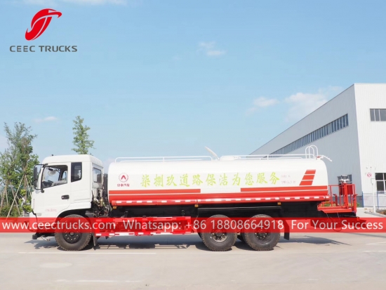 ДОНГФЕНГ 20.000Л камион за воду, ДОНГФЕНГ 6к4 шасија са леве стране, ручни мењач са 8 брзина, дизел мотор ЦУММИНС 210 КС, водена пумпа познатог бренда, са предњом, средњом и задњом млазницом за прскање по избору. Све слике и логотипи зависе од захтева.