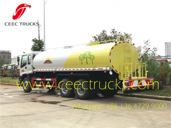 Камион за воду од 20000 литара Монголија, шасија ИСУЗУ 6*4 ЛХД, мотор 6ХК1ТЦ са супер моћним 240КС. БРЗИ ручни мењач са 9 брзина, што се тиче цистерне за воду од 20 ЦБМ, челика високе чврстоће и дебљине преко 5 мм. Све слике и логотипи зависе од захтева.