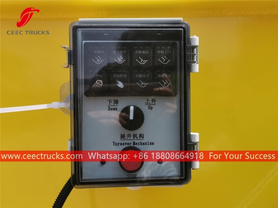 Европски стандард компримовани камион за смеће од 12000 литара, који користи тело компактора од челичног материјала високе чврстоће, ПЛЦ модел за контролу увоза, уређај за контролу хидрауличног цилиндра, контролну кутију на енглеском језику за лак рад
