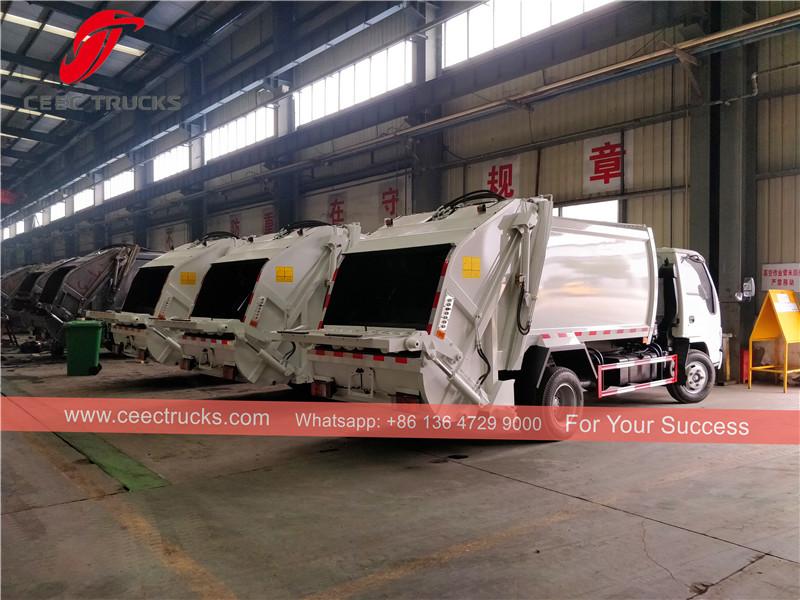 ИСУЗУ 5 ЦБМ камиони за набијање отпада у фабрици, припремају се за испоруку.