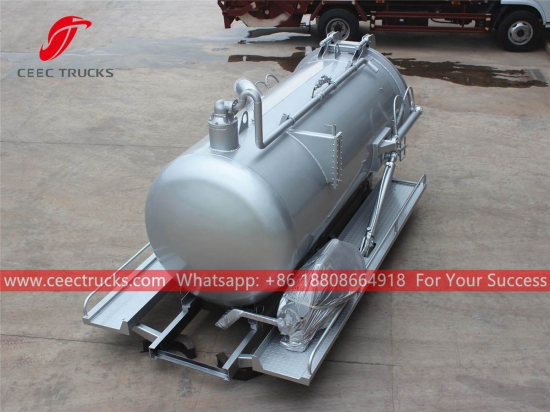 Комплет тела за вакуум танкер (такођезове вакуумска цистерна за отпадну воду, опрема за вакумске камионе, каросерија камиона за канализацију, произвођач камиона за вакум цистерне у Кини, структура каросерије вакумског камиона, надградња камиона за канализацију, комплет камиона за канализацију)јекористи се за сакупљање, транспорт и испуштање течности као што су прљава вода, муљ, септичка, сирова нафта и чврсте ствари као што су ситно камење, цигле такође. Погодан је за чишћење канализације, септичке јаме, септичке јаме, сливника, итд. Широко се користи у области животне средине и санитације.
