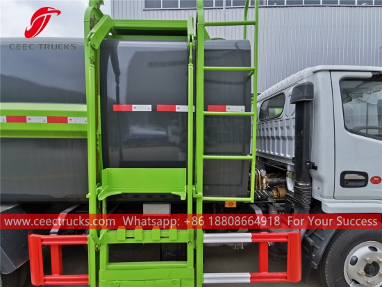 ДОНГФЕНГ 4цбм Камион за сакупљање кухињског отпада, ДОНГФЕНГ 4к2 шасија, ручни мењач са 5 брзина, дизел мотор ЦХАОЦХАИ 102ХП, аутоматски уређај за бочно подизање, опремљен са хидрауличним задњим вратима, фарбање и логотипи зависе од захтева.