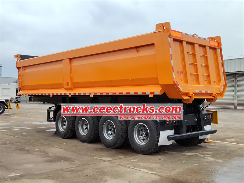 1. Моћан капацитет утовара:Ово4-осовинска полуприколица дамперима носивост од 50 тона, лако се носи са транспортом разних тешких терета. Његова чврста структура рама и оптимизована расподела осовинског оптерећења обезбеђују стабилност и сигурност при великим оптерећењима.