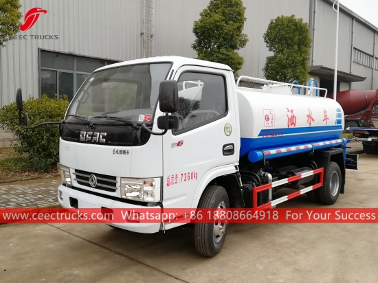 4.000 литара камион за доставу воде ДОНГФЕНГ (такође се зовеКамион за чисту воду на путу, Камион за прскање воде, Камион за превоз воде, Камион за утовар воде, Камион за воду са прскалицама) јекористи се за испирање путева, озелењавање дрвећа и травњака, чишћење високих зграда, изградњу путева и фабрика. Има функције испирања, заливања, транспорта воде и гашења пожара.