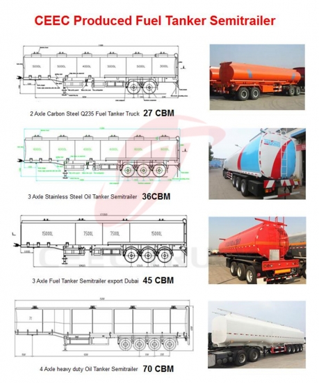 Кина најбоља полуприколица цистерна за гориво, такође се може назвати дизел цистерна полуприколица, полуприколица цистерна за нафту, полуприколица цистерна за бензин, приколица цистерна од нерђајућег челика, алуминијумска приколица цистерна итд..који се углавном користе за транспорт свих врста запаљивих течности, као што су дизел, нафта, бензин. Приколица цистерна за гориво од 40 ЦБМ од нерђајућег челика извози се у Уједињене Арапске Емирате и користиће се за транспорт сирове нафте у нафтном пољу.
