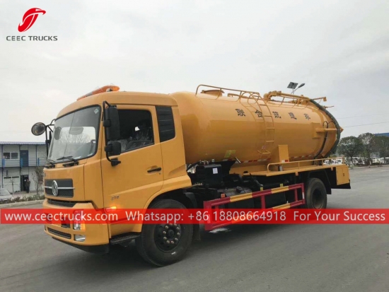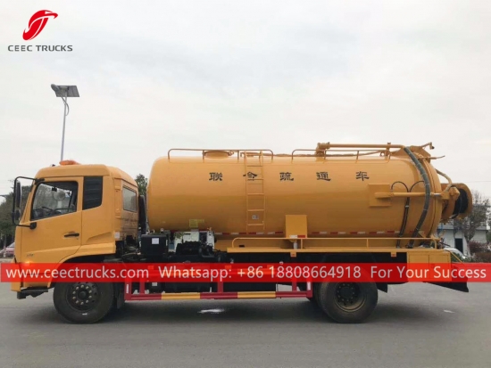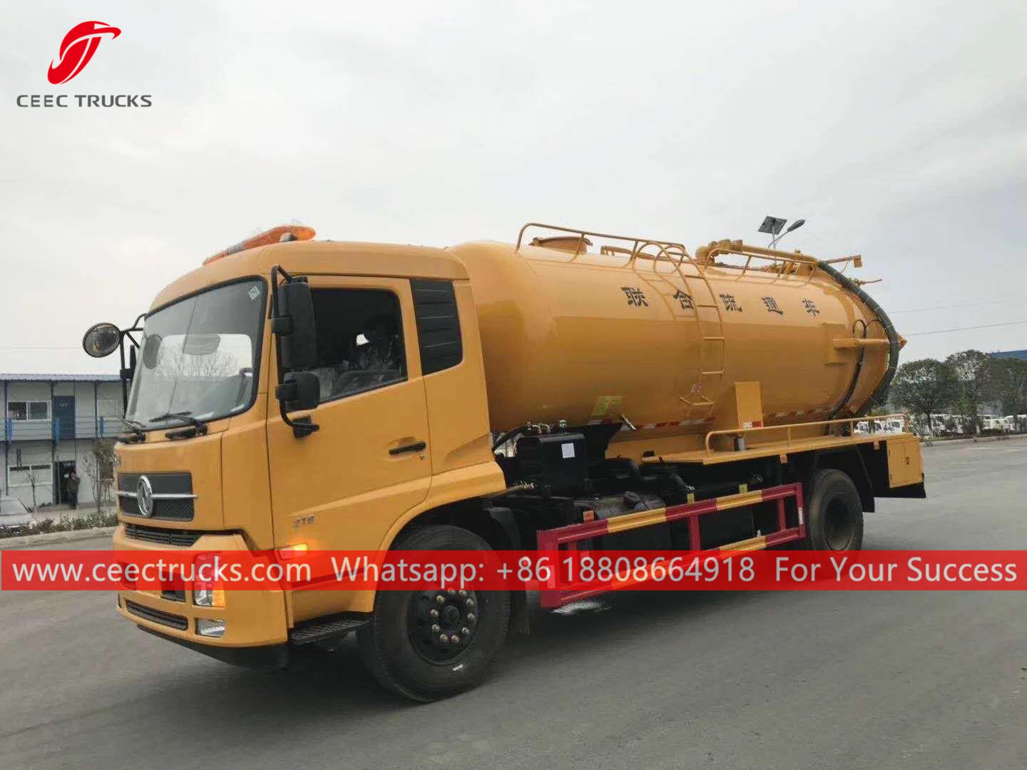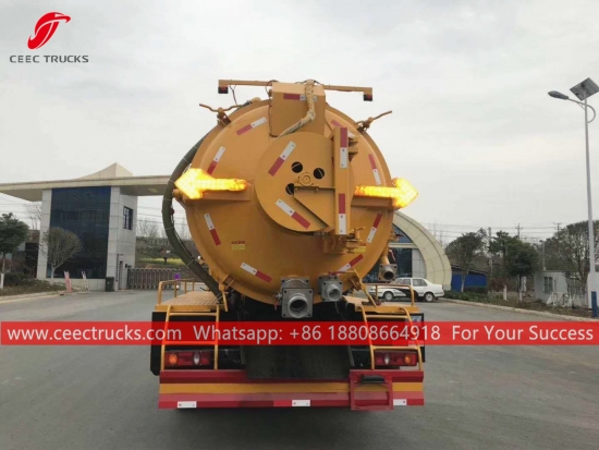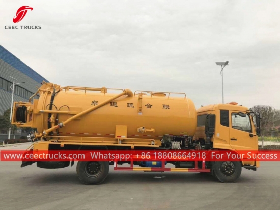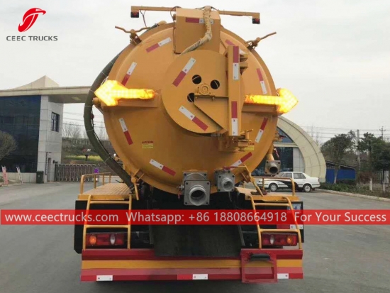 Комбиновани вакумски камион Донгфенг (такође се зовеКомбиновани млазни усисивач, камион за усисавање, комбиновани чистач канализације, комбиновани млазни усисни камион, млазни и усисивач, усисивач и млазни камион, комби са млазом / усисивачем) је возило које је дизајнирано да очисти сваку блокаду са млазницама које се крећу у канализационом цевоводу под високим притиском и очисти канализационе одводне линије помоћу снажног вакуумског усисавања да усисава сву воду и муљ из канализационе рупе. Овај камион се широко користи за заштиту животне средине.
