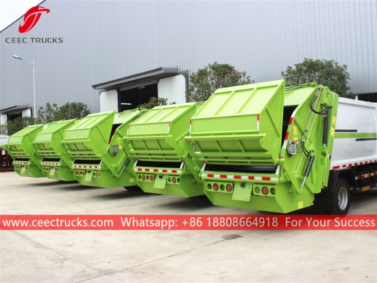 Каросерија компактора камиона за смеће(такође се зовеКомплет компактора за смеће, компресиони камион за смећетело, горња конструкција камиона за отпатке задњег терета) је врста машине за камион за набијање смећа. Компримовани камион за смеће карактерише компримовање смећа путем специјалног уређаја за компресију поред његових функција транспорта и истовара као обичан камион за смеће.