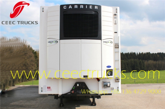 Полуприколица хладњача од 60 ЦБМ са 3 осовине, БПВ / ФУВА, ЈОСТ слетне ноге и ЈОСТ #50 кингпин који се широко извози у Африку Конго, Тхермо Кинг расхладна јединица и температура се може контролисати -20°ƒ. Широко се користи за испоруку меса и поврћа.