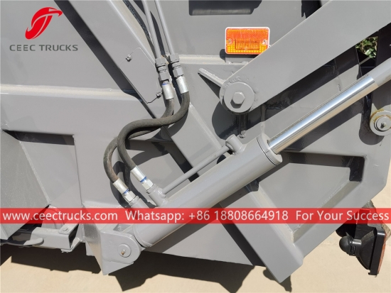 Ново дизајнирана каросерија камиона за одлагање отпада са стражњим оптерећењем од 6.000 литара, који користи тело компактора од челичног материјала високе чврстоће, увезени контролни ПЛЦ модел, управљачки уређај хидрауличног цилиндра, контролну кутију на енглеском језику за лак рад.
