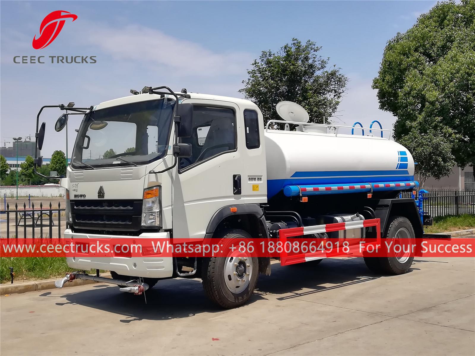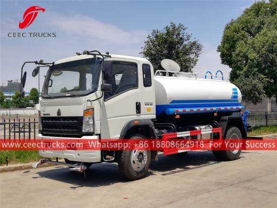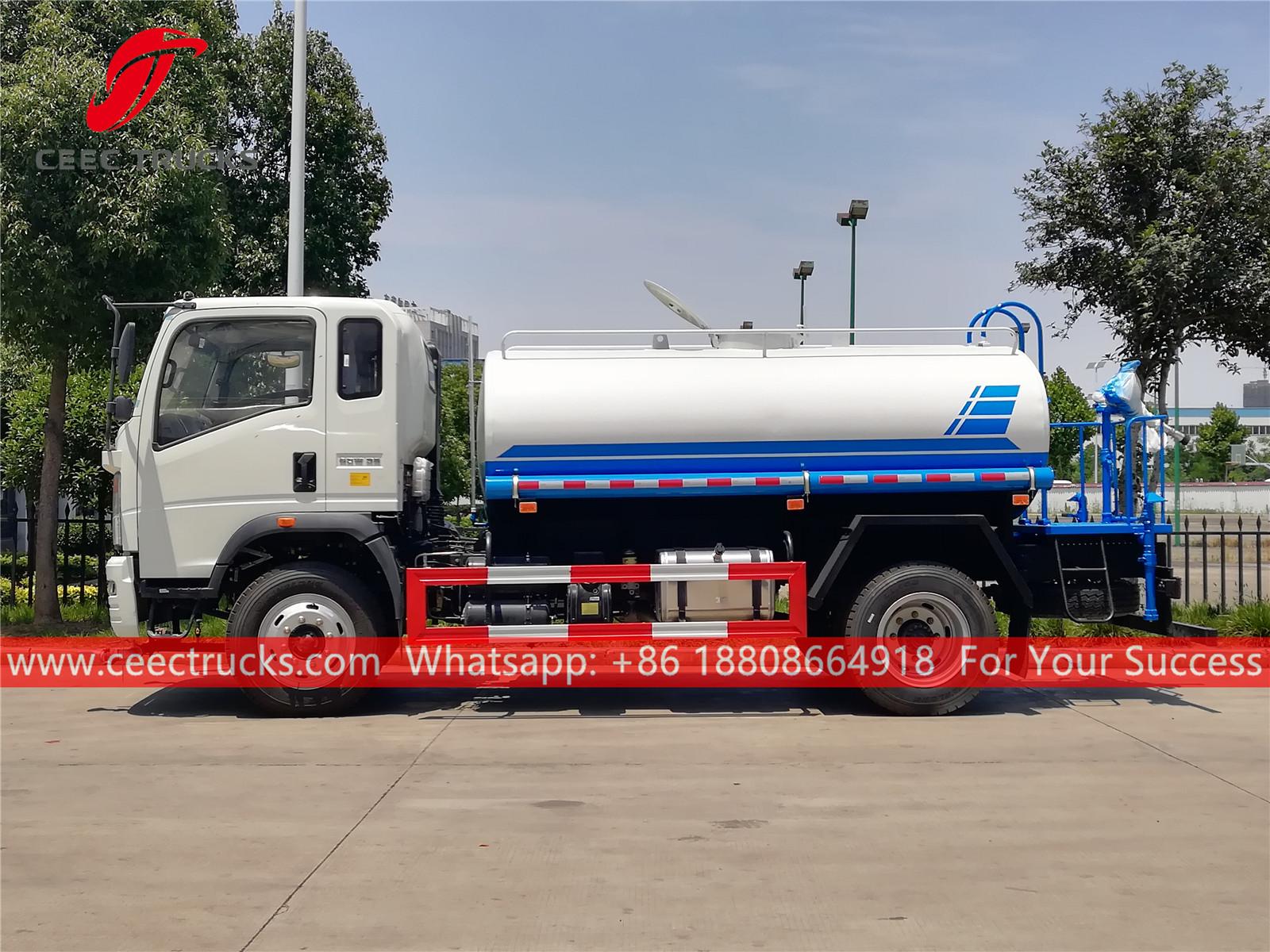 ХОВО 8.000Л камион за прскање воде, ХОВО 4к2 лева шасија, ручни мењач са 6 брзина, дизел мотор СИНОТРУК 160 КС, водена пумпа познатог бренда, са предњом, средњом и задњом млазницом за прскање по избору. Све слике и логотипи зависе од захтева.