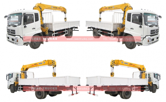 Донгфенг Телескопски модел 8Т камион кран за продају, ЛХД и РХД модел опционо, ЦУММИНС дизел мотор 170 КС/190 КС, ручни мењач са 6 брзина за врућу продају. Опремљен телескопском дизалицом од 8 тона. Теретна кутија може бити дугачка и до 5500 мм, са даљинским управљачем по избору купца