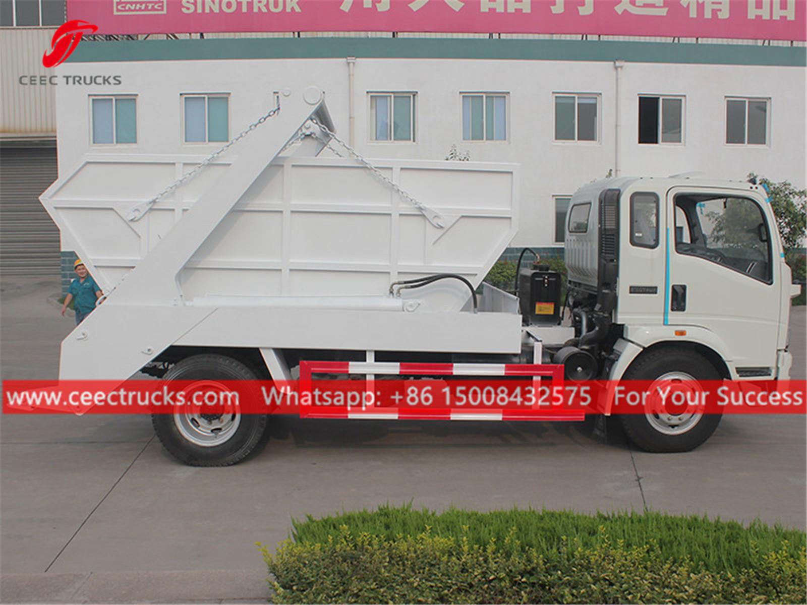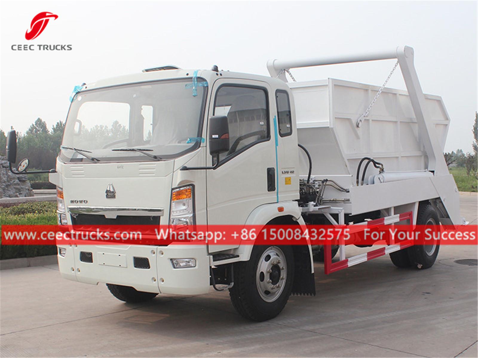 Филипински камион за смеће од 8 кубних метара, шасија ХОВО 4к2, ручни мењач са 6 брзина, дизел мотор од 120 КС, систем закретних руку од челика високе чврстоће, хидраулички контролни уређај и електрична контролна кутија опционо, све боје и логотипи зависе од захтева.