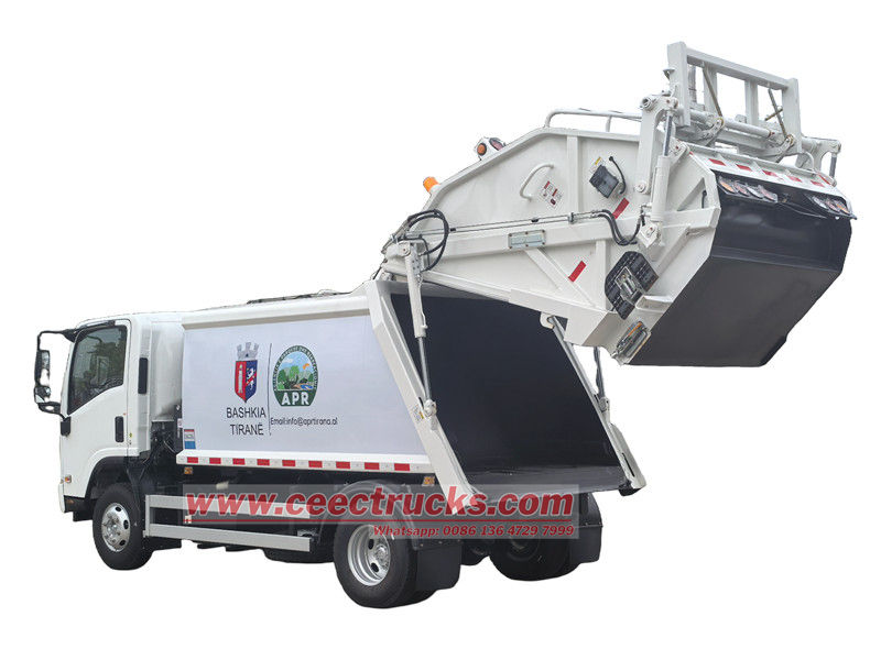 PLC control systemИсузу НПР 10 тона са задњим утоваривачем је ефикасно возило за градску санитацију које се углавном користи за сакупљање, сабијање и транспорт кућног отпада. Возило је опремљено снажним уређајем за компресију који може брзо да сабије растресити отпад, значајно смањи запремину отпада, повећа капацитет товара и смањи учесталост и трошкове транспорта. Задњи утоваривач Исузу НПР Затворени дизајн ефикасно спречава цурење отпада и емисију мириса, избегавајући секундарно загађење.