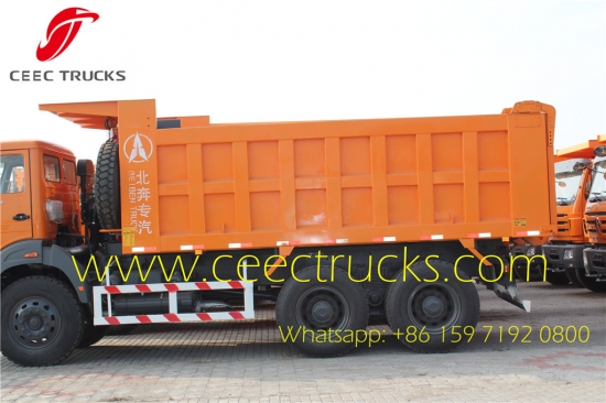 Беибен 2538 кипер камион са кратком кабином, мотор ВЕИЦХАИ 380КС, БРЗИ ручни мењач са 12 брзина са механичком кутијом, наши кипер камиони од 50Т користе каросерију дампера К550 високе чврстоће специјално дизајнирано за извоз у Африку