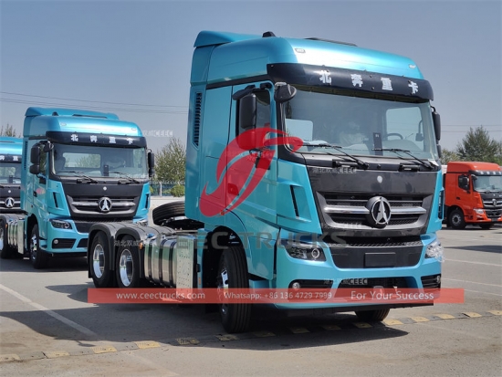 Тегљач Беибен 6к4 В3, ЛХД или РХД, ВЕИЦХАИ 560ХП дизел мотор, БРЗИ ручни мењач са 9 брзина, максимална тежина вуче може бити до 40 тона, сликање и логотипи зависе од захтева.