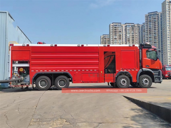 БЕНЗ ватрогасни мотор од водене пене са сувим прахом, БЕНЗ Лефт Ханд Дриве модел 8к4 шасија, 12-брзински мануелни мењач, БЕНЗ 580ХП дизел мотор, фарбање и логотипи зависе од захтева.