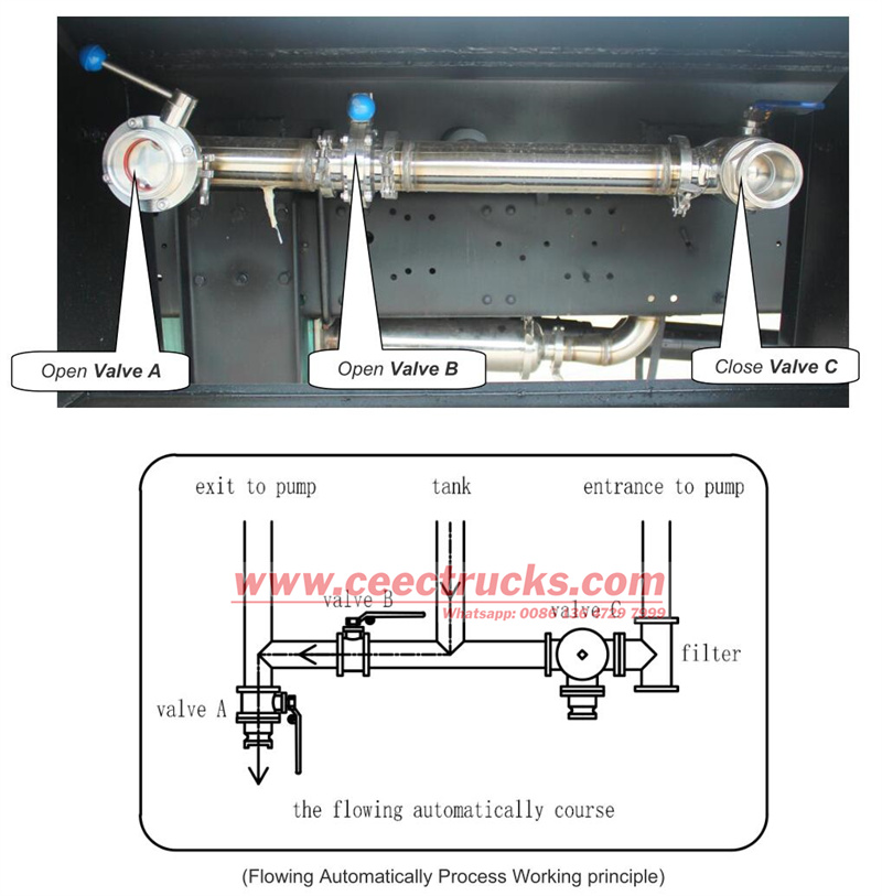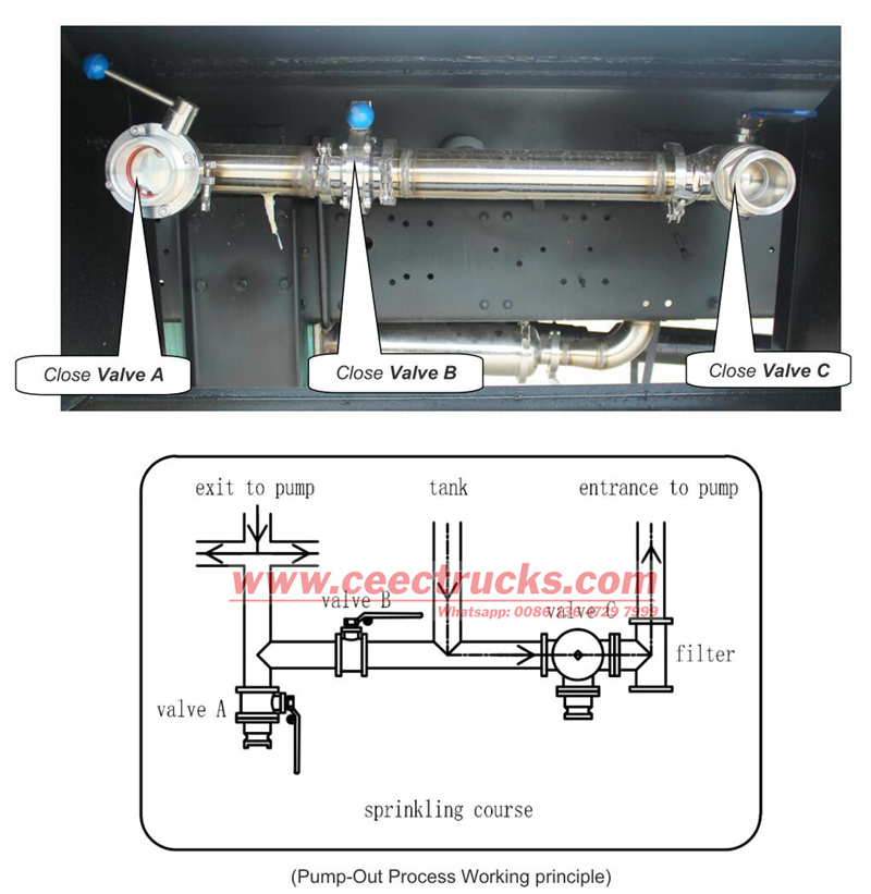 резервоар:Резервоар је направљен од материјала високе чврстоће, који је отпоран на корозију и хабање. Плоча за разбијање таласа је дизајнирана унутар резервоара да смањи вибрације воде у резервоару и обезбеди сигурност и стабилност током транспорта.