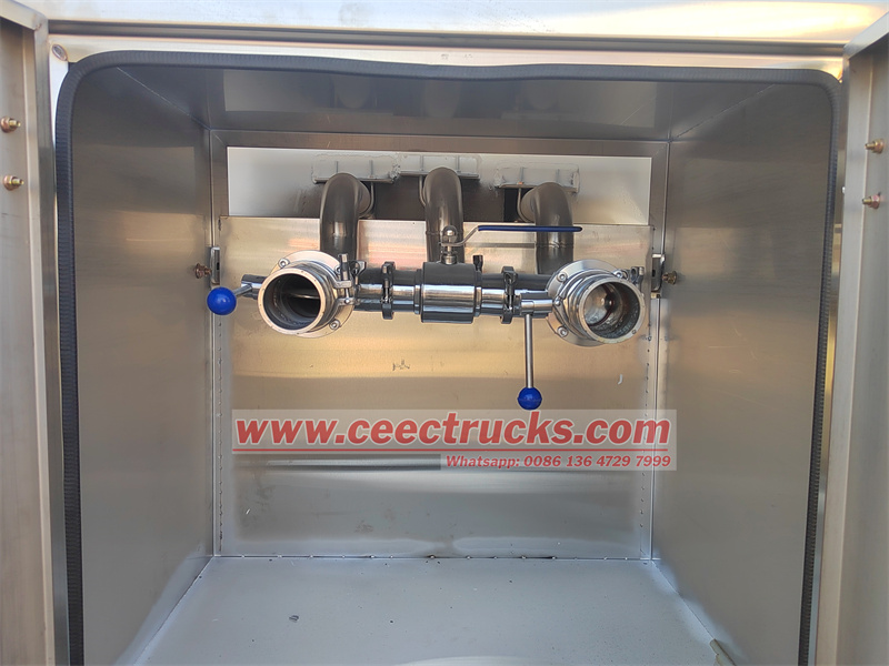 Систем за довод и довод воде:Возило за испоруку воде ИСУЗУ ГИГА опремљено је комплетним системом за довод и довод воде, укључујући довод воде, излаз воде, самопроточни кугласти вентил и друге компоненте, што је погодно за утовар и истовар воде за пиће.