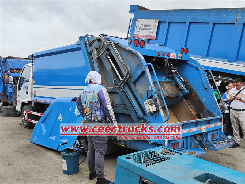 Припремите уобичајене алате као што су кључеви и кључеви, скините бочну заштитну ограду, која се обично повезује са задњим резервоаром, затим можете почети да проверавате и најлонски клизач између клизне плоче и задњег резервоара, постоје два најлонска клизача, горњи најлонски клизач и најлонски клизач утоваривача, углавном пажњу треба обратити на доњи део. Такође између потисне плоче и тела компактора такође је опремљен најлонским клизачем, који чини да потисна плоча ради глатко.