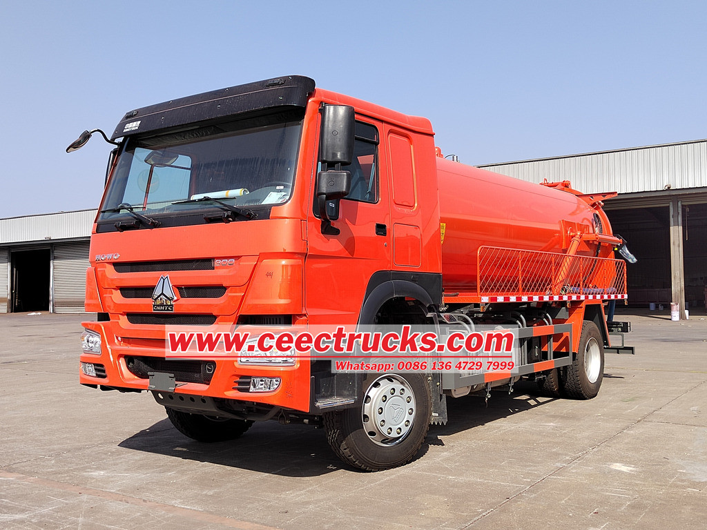 Синотрук ХОВО усисни камион за канализацију са италијанском МОРО пумпом је ефикасно, стабилно и издржљиво специјално возило, које се широко користи у урбаној еколошкој санитацији и градњи општина. Да би се обезбедио његов дуготрајан стабилан рад, потребно је редовно одржавање. имамоУсвојена је шасија Синотрук ХОВО која је позната по својој издржљивости и јакој носивости. И еОпремљен одговарајућим мотором, ЦУММИНС и ИУЦХАИ за лаке ХОВО камионе и ВЕИЦХАИ дизел мотор за тешке ХОВО камионе, прилагођени стандард емисија може бити ЕУРО 3, ЕУРО 4, ЕУРО 5 и ЕУРО 6, како би се задовољили сви захтеви купаца, мењач је мануелни модел ХВ19710 или ХВ10 реверзибилни модел. И погонски систем који осигурава да возило може да ради стабилно у различитим условима на путу.