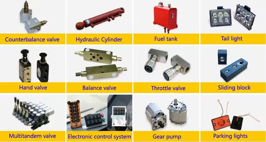 ♦ Компоненте: Укључује хидрауличну пумпу, вишесмерни контролни вентил, хидрауличне цилиндре, резервоар за уље и цеви.