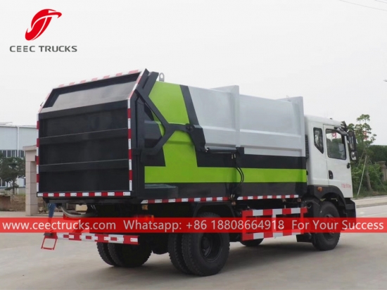 Донгфенг 16000 литара камион за сакупљање смећа, користећи Донгфенг ЛХД / РХД 4*2 шасију, ЦУММИНС 180ХП дизел мотор, 8-степени мануелни мењач, хидраулична задња врата за лакши рад. Све слике и логотипи зависе од захтева.