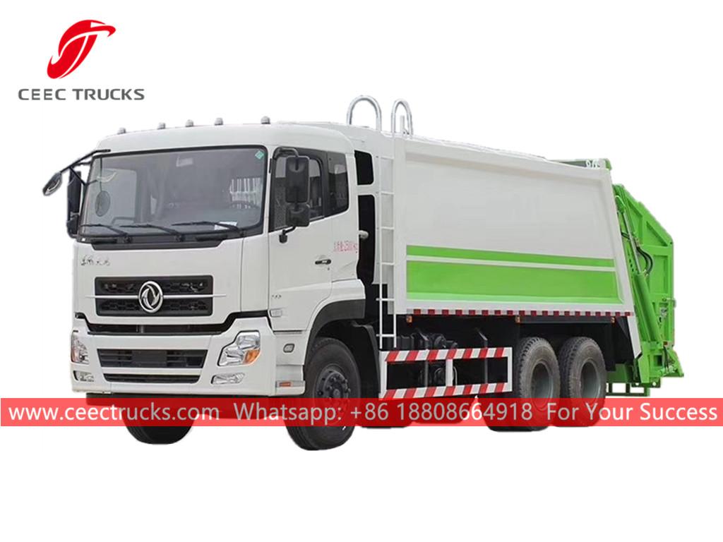 Донгфенг 20.000 литара камион компактор за смеће, Донгфенг 6к4 шасија, ЦУММИНС 245 КС дизел мотор, БРЗИ ручни мењач са 9 брзина за лаку вожњу.ПЛЦ контролна кутија.Све слике и логотипи зависе од захтева.