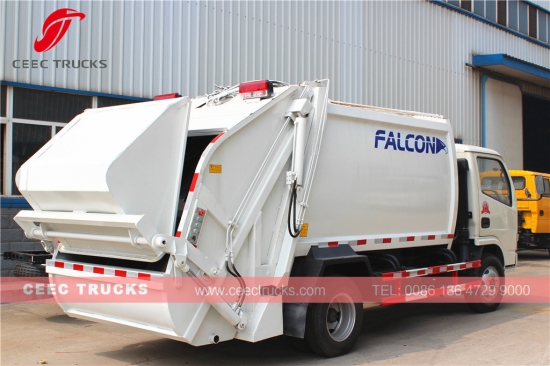 Компактор за смеће Донгфенг (такође се зовеКомпримовани камион за смеће, камион за смеће са хидрауличним пресовањем, камион за смеће са задњим утоваривачем, камион за смеће компактор, камион са компресором за смеће, камион за компресију смећа са задњим утоваром, возило за сакупљање отпада) је дизајниран за свакодневни транспорт смећа у животним подручјима као што су све врсте градова, велике станице, луке и пристаништа, аеродроми и густо насељена подручја попут индустријских и минералних предузећа и војних јединица.