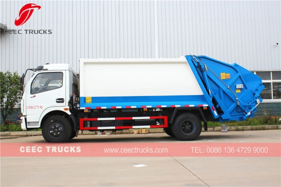 Компактор за смеће Донгфенг (такође се зовеКомпримовани камион за смеће, камион за смеће са хидрауличним пресовањем, камион за смеће са задњим утоваривачем, камион за смеће компактор, камион са компресором за смеће, камион за компресију смећа са задњим утоваром, возило за сакупљање отпада) је дизајниран за свакодневни транспорт смећа у животним подручјима као што су све врсте градова, велике станице, луке и пристаништа, аеродроми и густо насељена подручја попут индустријских и минералних предузећа и војних јединица.