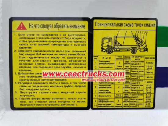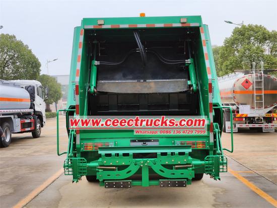 Компактор са задњим утоваривачем 4к2 опремљен новим дизајнираним ЦАН контролним системом, мултифункционалним системом компресије смећа, бочним мердевинама за пењање, електричним контролним кутијама у кабини и задњем делу резервоара, задњим делом уграђеном ножном педалом, која је прилагођена за прикупљање смећа из различитих области, две јединице резервоара за сакупљање отпадних вода могу ефикасно спречити друго загађење током транспорта. Кабина за једноредно седиште Удобно седиште, пријатан осећај вожње. Због тога је возило идеалан камион цистерна углавном за транспорт нафте и функцију пуњења горива.