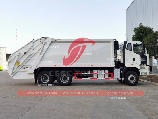 ФАВ 20цбм камион за набијање смећа, ФАВ 6А—4 шасија за тешке теретне камионе са левим погоном, опремљен са КСИЦХАИ 350ХП дизел мотором, ФАСТ 12-степеним мењачем. ЦАН-бус контролни систем за лак рад. Све слике и логотипи на основу захтева купаца.