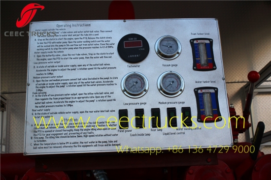 Седишта у кабини могу бити опциона, обично једноредно одело за 3 путника укључује возача, дворедну интегралну структуру и може да прими 6-8 путника; може угасити ватру док трчи, што има велики домет и снажну моћ гашења. Нормалан притисак, средње-ниски притисак, пумпа високог и ниског притиска је опциона.Купац може изабрати 3 резервоара, резервоар за воду, резервоар за пену и резервоар за суви прах. Можете одабрати различите материјале који задовољавају ваше захтеве. Укупан распон капацитета може бити од 2000Л до 15000Л.