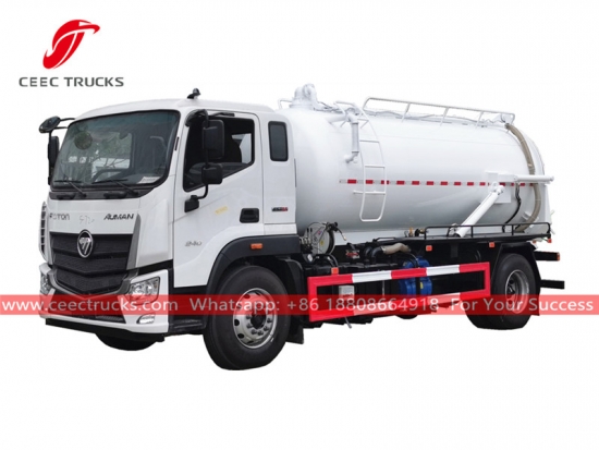 ФОТОН 10.000 литара вакуумски усисни камион, ФОТОН 4к2 Лефт Ханд Дриве шасија, 6-степени мануелни мењач, ЦУММИНС 154ХП дизел мотор, јака усисна цистерна, позната марка вакуум пумпа, Све боје и логотипи зависе од захтева.