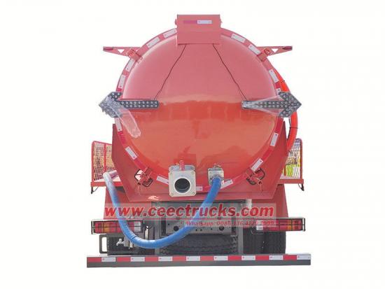 Усисна цев може бити опремљена различитим млазницама или филтерима како би се задовољиле потребе усисавања различитих примена, као што су цевоводи и септичке јаме. Вакуумски усисни камион HOWO такође има преливни вентил који аутоматски затвара улаз за ваздух када се ниво течности у резервоару приближи горњој граници, спречавајући повратни ток канализације и оштећење вакуум пумпе.