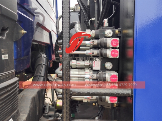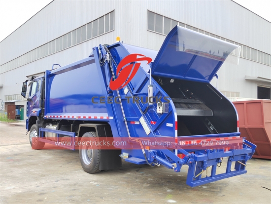 ЦЕЕЦ ТРУЦКС произведено тело компактора за смеће, са кутијом запремине 8 кубних метара, задњим са уређајем за окретање канте за отпатке, може преокренути канте за отпад од 120Л/240Л/660Л/1100Л, контролна табла+ручна ручица+унутрашња контрола кабине. Нова равна каросерија аутомобила у облику лука, материјал каросерије је висококвалитетни угљенични челик од гвожђа и челика Вухан, ефективна запремина компресије је 8 кубних метара, контрола рада ПЛЦ-а са једним кључем, интегрисани режим рада лампе, двострука електрична контрола са обе стране, са радом кабине и ојачана подна подршка, двосмерна компресија, отварање и лако чишћење резервоара.