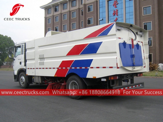 Камион за чишћење улица ХОВО 12 кубних метара, шасија ХОВО 4к2, ручни мењач са 6 брзина, дизел мотор од 210 КС, канта за прашину од нерђајућег челика и тело за чисту воду, систем са 2 четке са системом за прање, са електричном контролом кабине за лак рад. Све слике и логотипи зависе од захтева.
