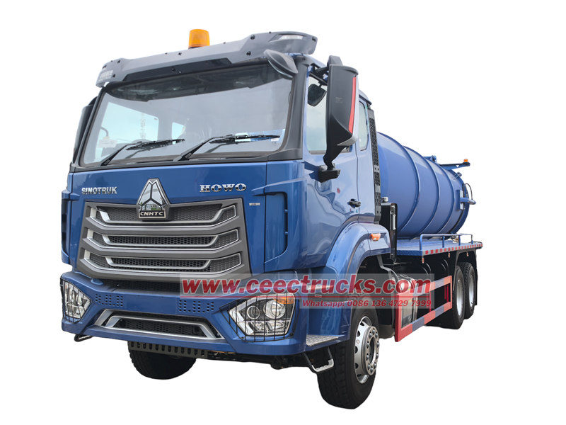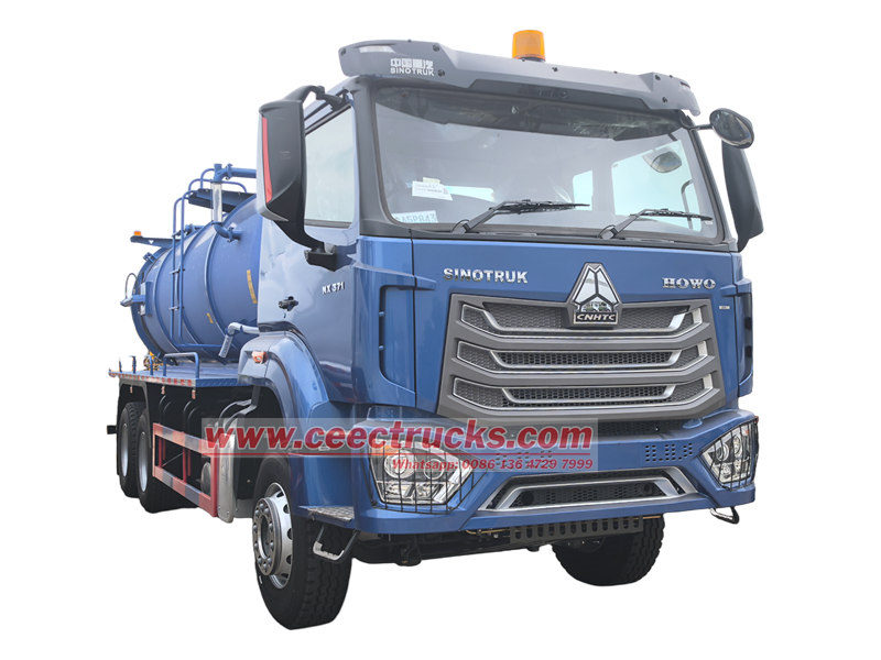Вакуумски празнилац септичких јама Howo од 15 кубних метара је модификован на бази шасије HOWO NX Cabin 6x4, са међуосовинским растојањем од 4325+1350 мм, гумама 315/80R22.5 са укупно 11 комада, клима уређајем, УСБ-ом и помоћи при управљању правцем. Опремљен је дизел мотором WP12.400E32 од 400 КС, мењачем HW19710, 10 брзина за вожњу напред, 2 брзине за вожњу уназад, управљачким уређајем ZF8118, који је моћан и једноставан за руковање. Возило је опремљено вакуумским резервоаром од 15 кубних метара, који може да задовољи разне потребе јаружања, као што су градска канализација и индустријски цевоводи.